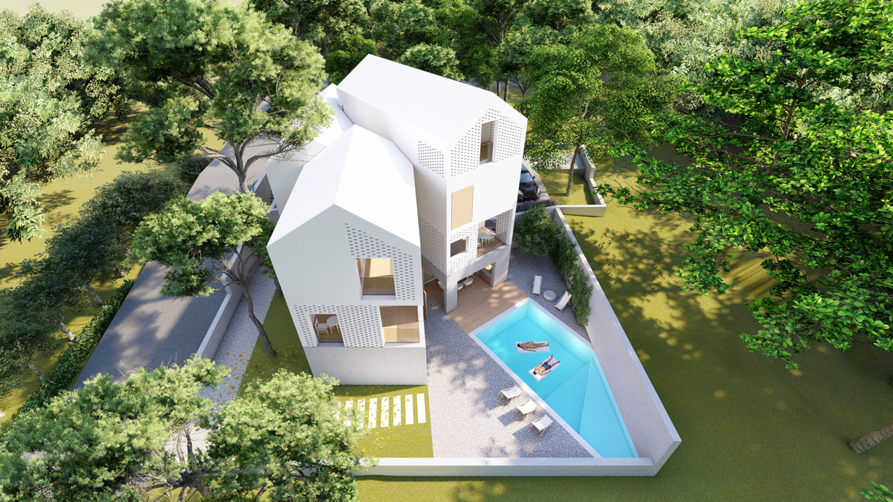 Obiteljska kuća J Godina projekta: 2018 Kad Bračanin prodaje zemlju do mora? Kad je oseka!Prava bračka situacija u kojoj su se uspjele smjestiti tri kuće umjesto jedne :)
