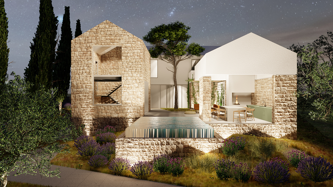 Potreba za što dužim boravkom na otvorenom i blizina pitome lučice snažno su utjecali na oblikovanje kuće.