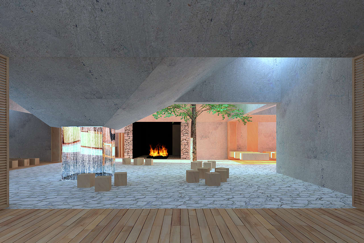 Kao što je unutrašnjost introvertiranog paviljona oblikovana kako bi se čitao genius loci, jednako tako je i njegova vanjština razumljiva.