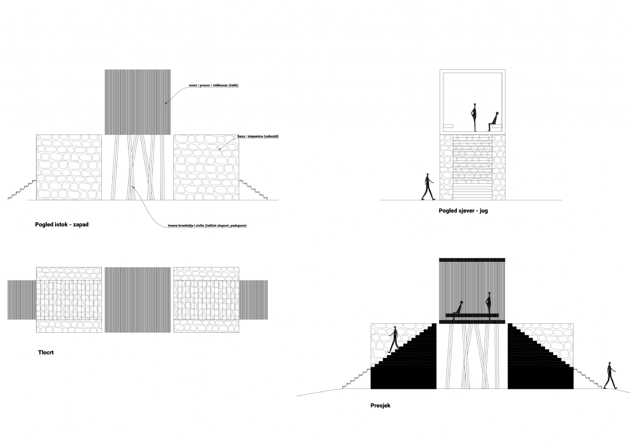 Koncept ovog idejnog rješenja je obuhvatiti jednim projektom cijeli prostor i oblikovati vidikovac / promatračnicu koji će ujedno biti i spomenik memorije na važan događaj iz bliske prošlosti.